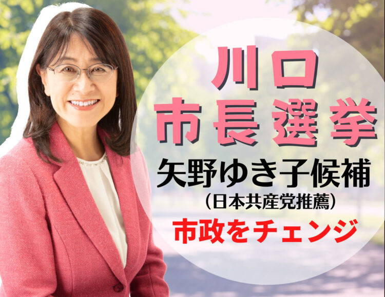 共産党が推薦する矢野ゆき子候補は、日本共産党元川口市議会議員として3期12年を務め、川口市議会で、学校給食費の無償化、小中学校の学校のエアコン設置に取り組み、また、困窮した市民の生活相談など、「ひとに寄り添う政治」を信念に活動してきました。